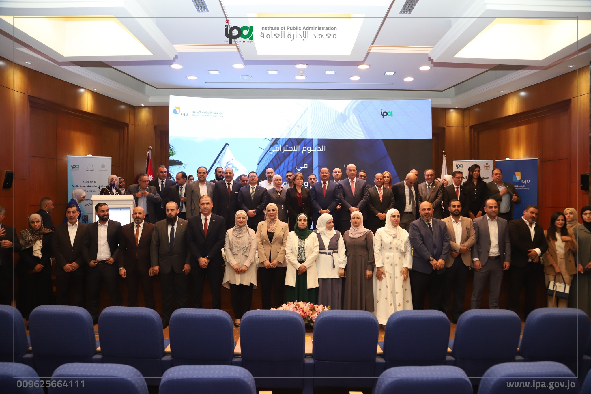 يشار إلى أن الدبلوم الاحترافي يُنفّذ ضمن مشروع دعم إصلاح الإدارة العامة في الأردن، المموَّل من الوكالة الإيطالية للتعاون الإنمائي، والمنفَّذ من قبل المنظمة الأوروبية للقانون العام، بالتعاون مع السفارة الإيطالية في عمّان، والجامعة الألمانية الأردنية، ووحدة إدارة وتنفيذ خارطة القطاع العام في رئاسة الوزراء.